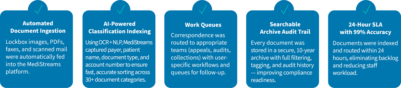 For DME providers handling high volumes of payer correspondence, automation isn’t a nice-to-have; it’s a competitive advantage. MediStreams delivered an end-to-end solution that not only reduced manual effort and lockbox errors but also unlocked revenue that was buried in documents no one had time to sort.